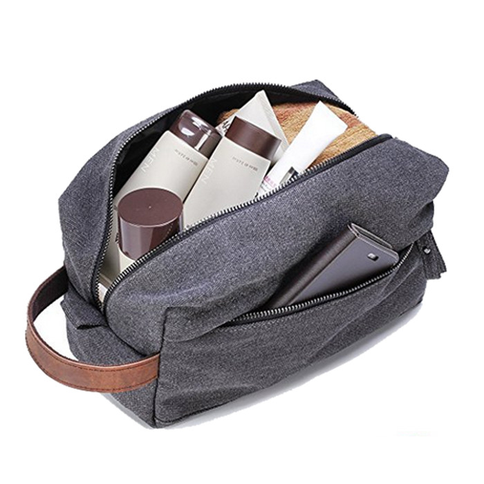 Сумка гигиенической косметикаи прочного холста водоустойчивая для людей с кожаной ручкой